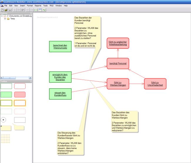 Das Programm ist entwickelt worden, um auf einfache Weise verschiedene Denkwerkzeuge zu visualisieren. Ein besonderer Schwerpunkt liegt auf der Darstellung des TRIZ-Werkzeugs der Funktionsanalyse.
