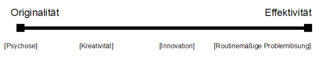 Kreativität befindet sich dabei links von Innovation. D.h. nach Runco ist der Anteil und die Bedeutung der Originalität bei der Kreativität größer als bei der Innovation.